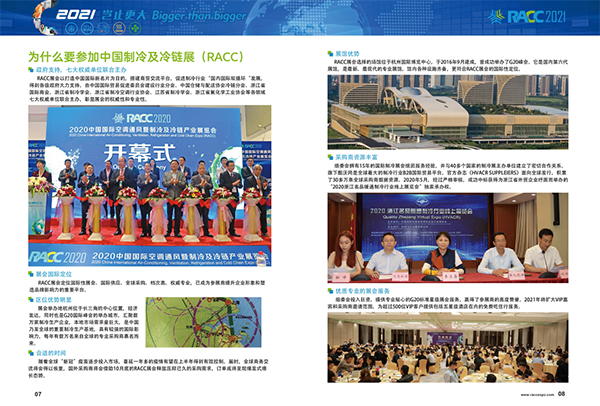 RACC展會(huì)定位國(guó)際性展會(huì),國(guó)際供應(yīng),全球采購(gòu)。組委會(huì)長(zhǎng)達(dá)15年的國(guó)際制冷展會(huì)組團(tuán)服務(wù),與多國(guó)制冷協(xié)會(huì)及展會(huì)主辦單位密切合作,多國(guó)展團(tuán)參展(2020年因疫情雖未能成行,均為展會(huì)開(kāi)幕發(fā)賀辭),展會(huì)檔次高,專業(yè)性強(qiáng),已成為參展商提升企業(yè)形象和塑造品牌影響力的重要平臺(tái)。